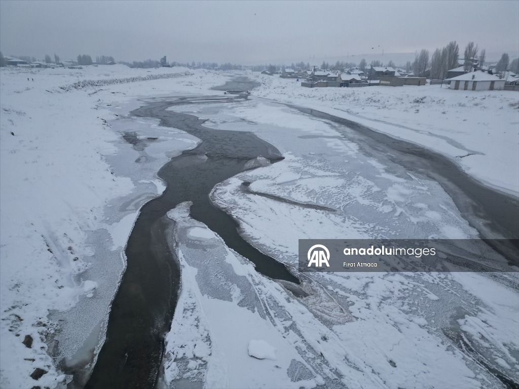 Ağrı'da etkili olan soğuk hava yaşamı olumsuz etkiliyor. Soğukların etkisiyle Murat Nehri kısmen dondu. (Fırat Atmaca - Anadolu Ajansı)Fırat Atmaca