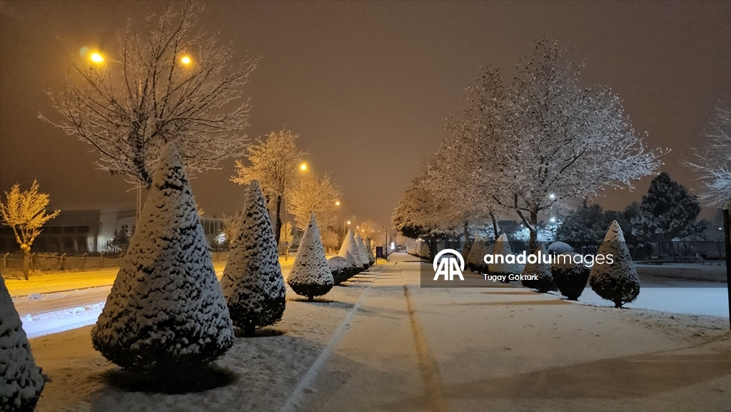 Afyonkarahisar’da gece saatlerinde başlayan kar yağışı, kent genelinde etkili oldu. Parklar, caddeler, sokaklar ve binaların çatıları kısa sürede beyaza büründü. (Arif Yavuz - Anadolu Ajansı)Arif Yavuz