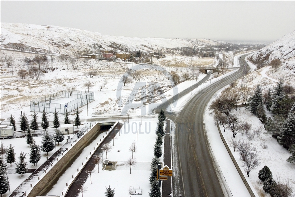 Konya'da dün akşam saatlerinden bu yana etkili olan kar yağışı nedeniyle cadde ve sokaklar beyaz örtüyle kaplandı. Şehir genelinde kartpostallık görüntüler ortaya çıktı. ( Abdullah Coşkun - Anadolu Ajansı )Abdullah Coşkun