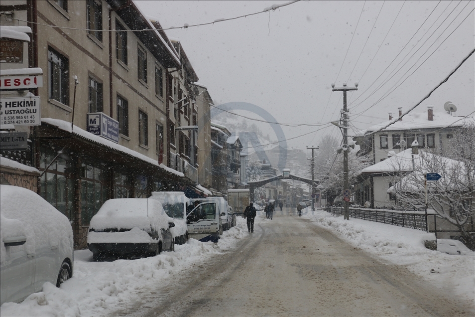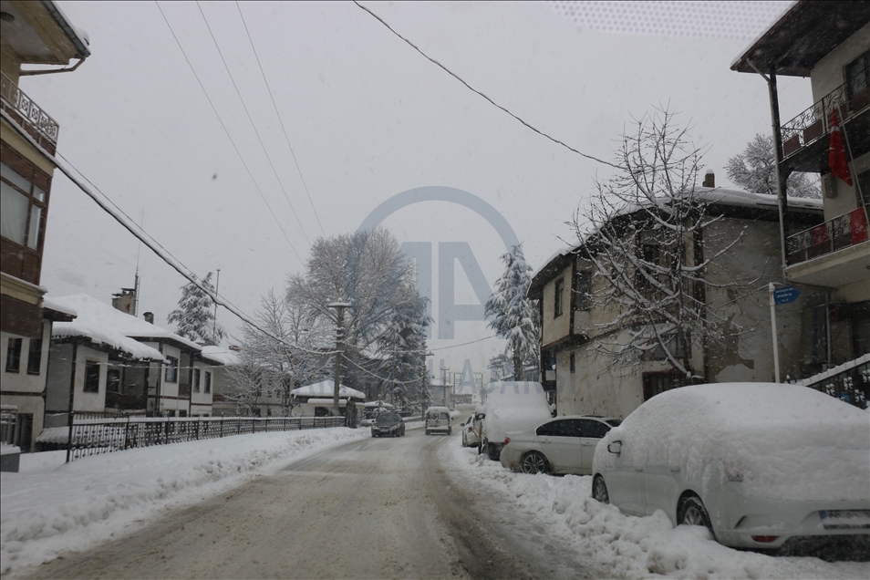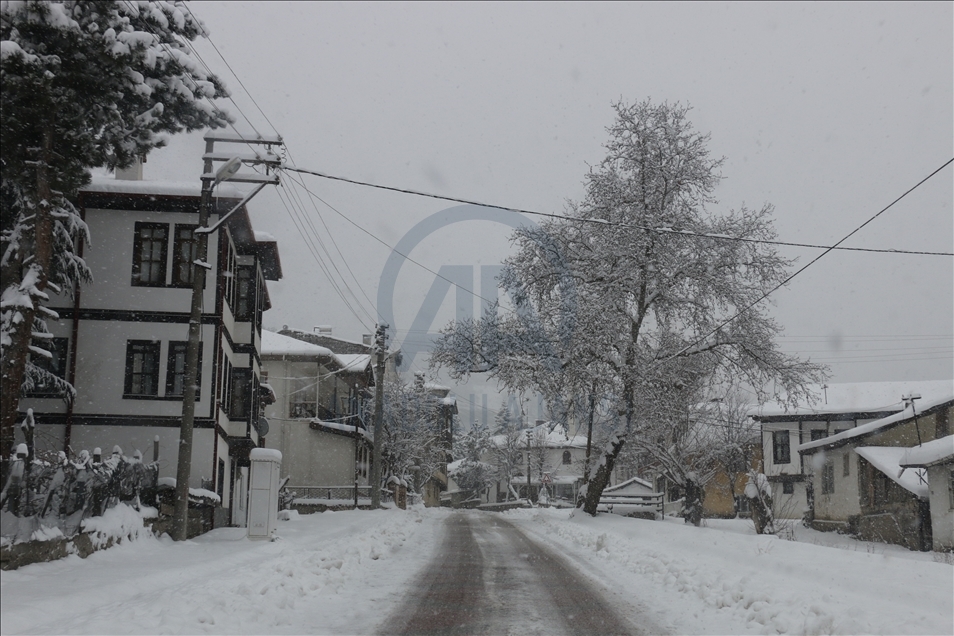 Tarihi Osmanlı kasabası Bolu'nun Mudurnu ilçesinde kar yağışı aralıklarla devam ediyor. ( İlhami Çetin - Anadolu Ajansı )İlhami Çetin