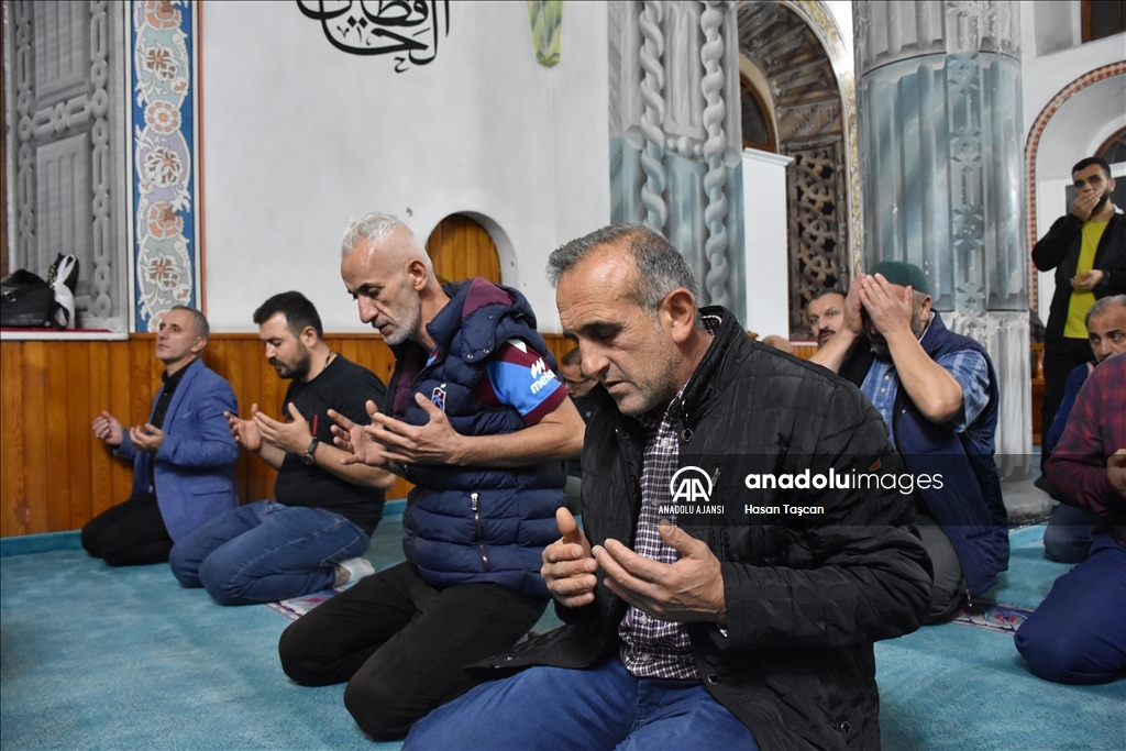 Diyanet İşleri Başkanlığınca ülke genelinde uygulanan "Gazze için duaya duruyoruz" programı kapsamında, Trabzon'da vatandaşlar İskenderpaşa Caminde yatsı namazı öncesinde dua etti. ( Hasan Taşcan - Anadolu Ajansı )Hasan Taşcan