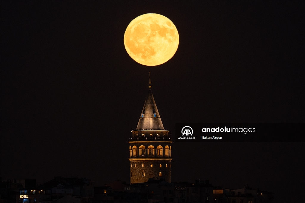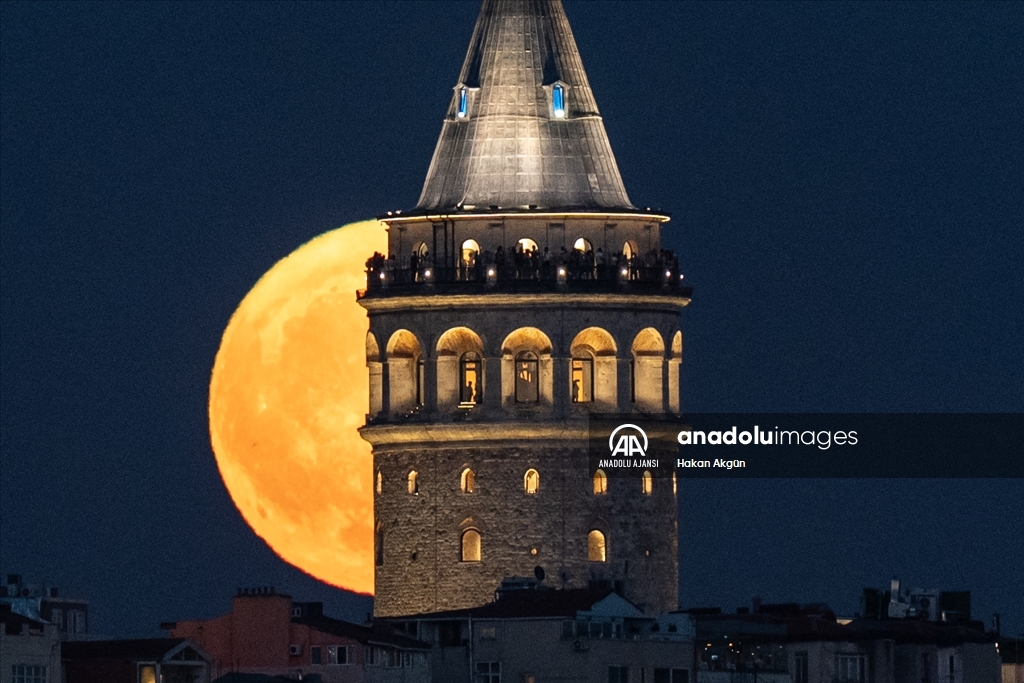 İstanbul'da "Süper Mavi Dolunay" olarak isimlendirilen dolunay, Galata Kulesi ile birlikte görüntülendi. ( Hakan Akgün - Anadolu Ajansı )Hakan Akgün