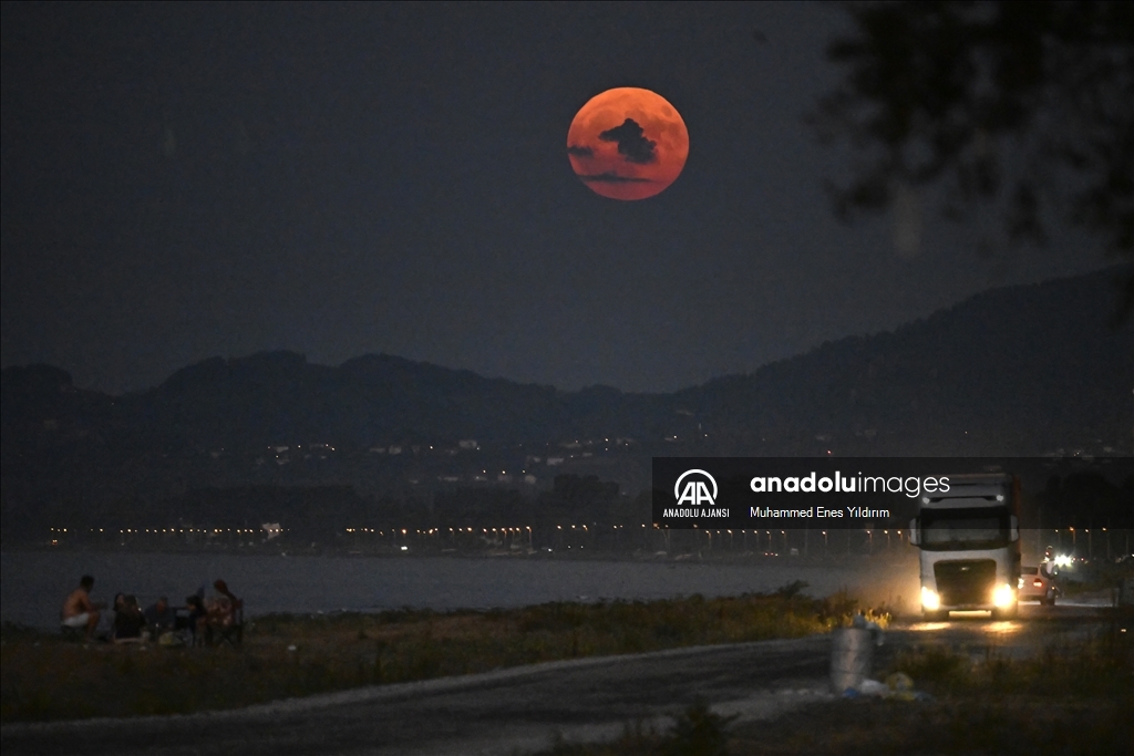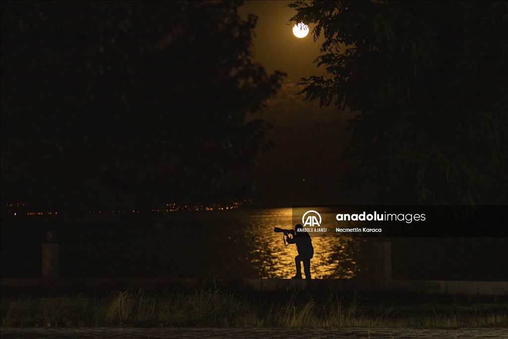 Samsun'da akşam saatlerinde gökyüzünde beliren Süper Ay, güzel görüntü oluşturdu. ( Muhammed Enes Yıldırım - Anadolu Ajansı )Muhammed Enes Yıldırım
