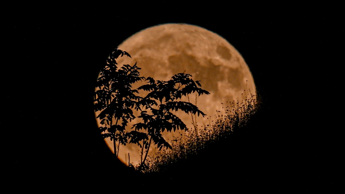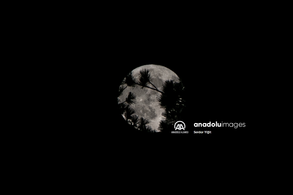Kütahya'nın Domaniç ilçesinde, akşam saatlerinde gökyüzünde beliren 'Süper Ay', çam ağaçları ile birlikte güzel görüntü oluşturdu. ( Serdar Yiğit - Anadolu Ajansı )Serdar Yiğit