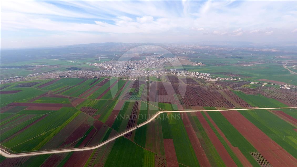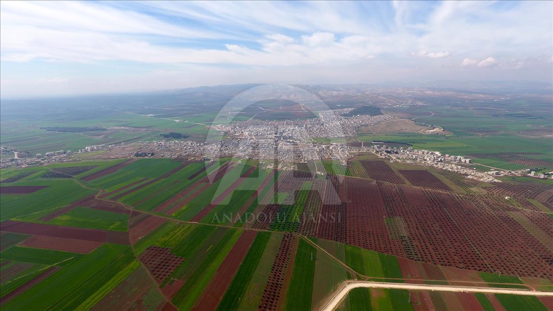 Türk Silahlı Kuvvetleri (TSK) ve Özgür Suriye Ordusu'nun (ÖSO) Afrin'i kuşatmaya almasına 1,5 kilometre kalırken, AA cephe hatlarından ilçe merkezini havadan görüntüledi. ( Mohammed Haj Mustafa - Anadolu Ajansı )Mohammed Haj Mustafa