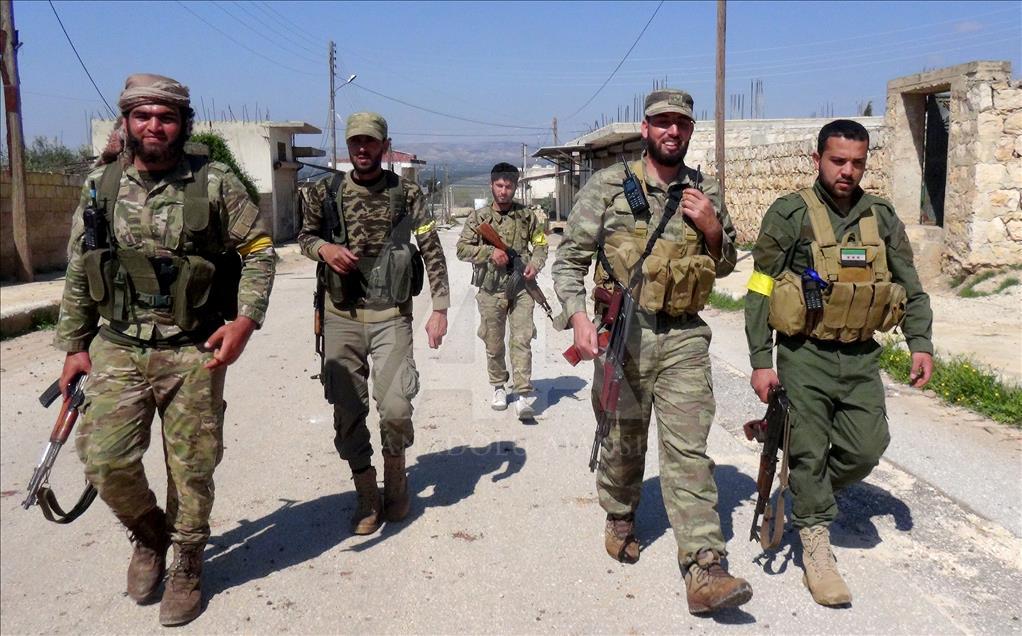 Türk Silahlı Kuvvetleri (TSK) ve Özgür Suriye Ordusu (ÖSO), Zeytin Dalı Harekatı kapsamında, Afrin'in Cinderes beldesine bağlı Celeme köyünü terör örgütleri YPG/PKK-DEAŞ'tan arındırdı. Operasyona katılan ÖSO mensupları (fotoğrafta) görülüyor. ( Ibrahim Hatib - Anadolu Ajansı )Ibrahim Hatib