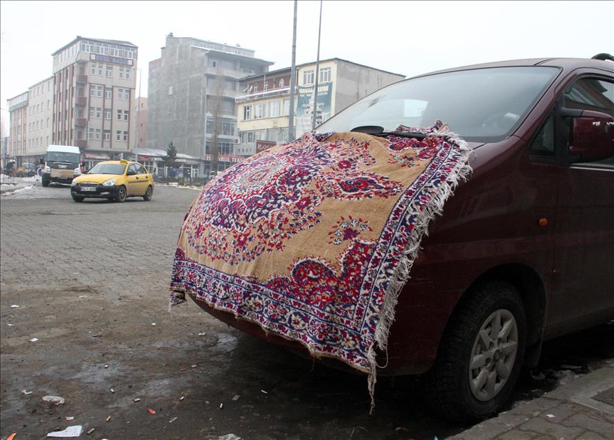 SOGUK HAVA DOGU ANADOLU BOLGESI'NDE ETKISINI SURDURDU. KIS ARDAHAN'DA HAYATI OLUMSUZ ETKILEDI. SOGUK HAVA NEDENIYLE DONMAMASI ICIN VATANDASLAR ARACLARININ MOTORUNU HALIYLA ORTTU. (ANADOLU AJANSI - GUNAY NUH) (20121230)GUNAY NUH