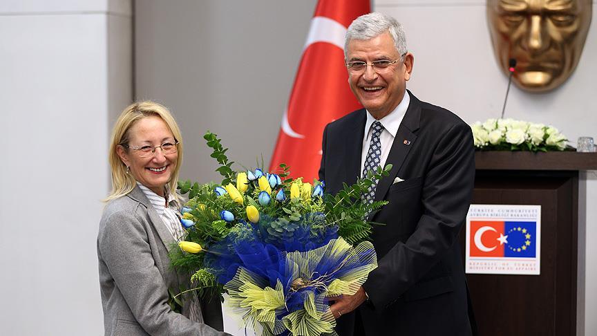 AB Bakanı olarak 22 Eylül 2015'ten beri görev yapan Dedeoğlu, Bozkır'ı bakanlığın girişinde karşıladı.