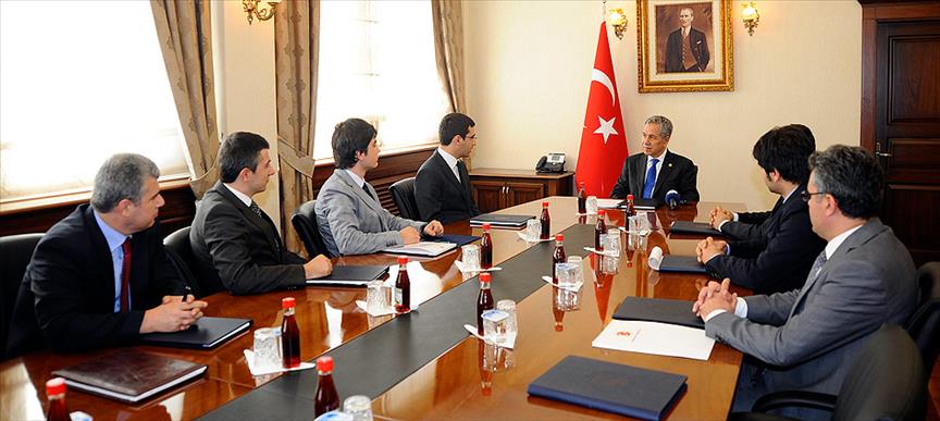 Başbakan Yardımcısı Bülent Arınç, Ulusal Öğrenci Konseyi Başkanı Nihat Buğra Ağaoğlu ile konsey temsilcilerini kabul etti.