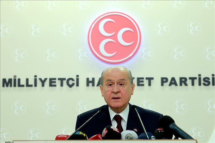 MHP lideri Bahçeli, ''MHP, anayasa değişikliği komisyonundaki değerli üyeleri ile yapılmak istenileni, inandıklarını yine komisyon çalışmalarında dile getireceklerdir. Masadan kalkmayı düşünmüyoruz'' dedi.