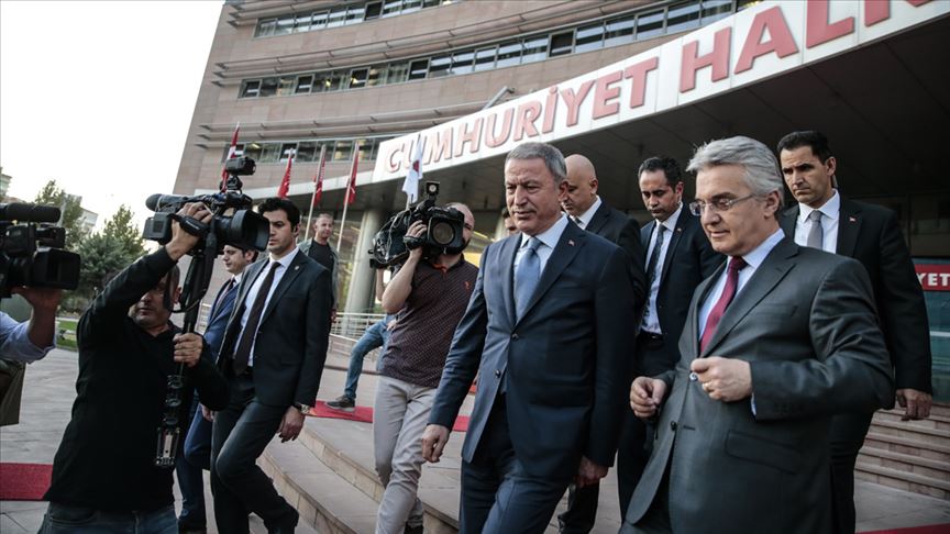 CHP Genel Başkanı Kemal Kılıçdaroğlu'nu partisinin genel merkezinde ziyaret eden Akar, "Barış Pınarı Harekatı"na ilişkin bilgi verdi.