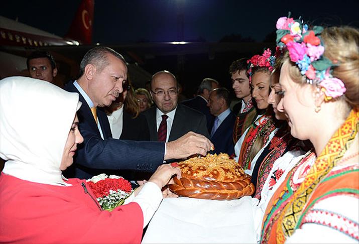 Karşılamada ayrıca Başbakan Erdoğan ve Eşi Emine Erdogan'a ekmek ikram edildi.