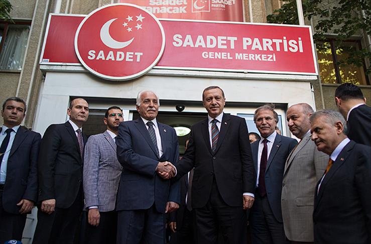 Başbakan Recep Tayyip Erdoğan, Saadet Partisi'ni ziyaretinde Genel Başkan Mustafa Kamalak tarafından karşılandı.