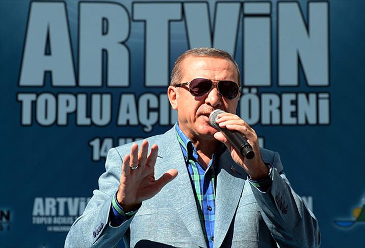 "Pensilvanya'nın gündeminden yörüngesinden çıkamayan bu muhalefete sizler 30 Mart'ta büyük bir ders verdiniz. Türkiye genelinde yüzde 45,5 ile, Artvin'de yüzde 46 ile siz bu muhalefete çok açık mesaj verdiniz" ifadesini kullanan Erdoğan, şunları kaydetti:
