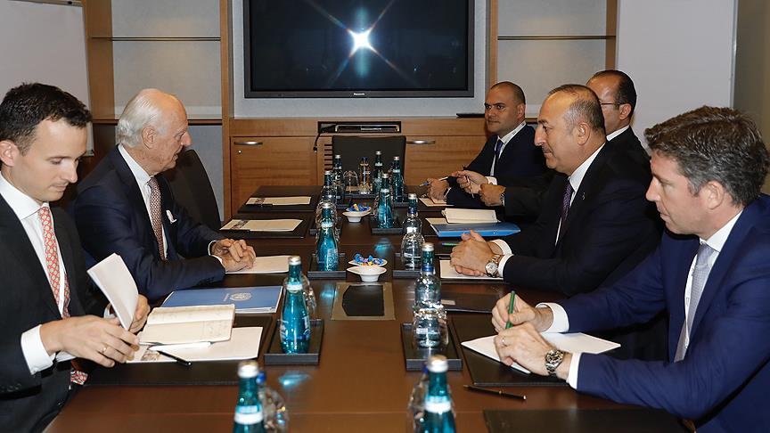Bakan Çavuşoğlu, "BM Genel Sekreteri'nin Suriye Özel Temsilcisi De Mistura ile başta Anayasa Komitesi olmak üzere Suriye'de siyasi sürece ilişkin önümüzdeki dönemi ele aldık." ifadesini kullandı.