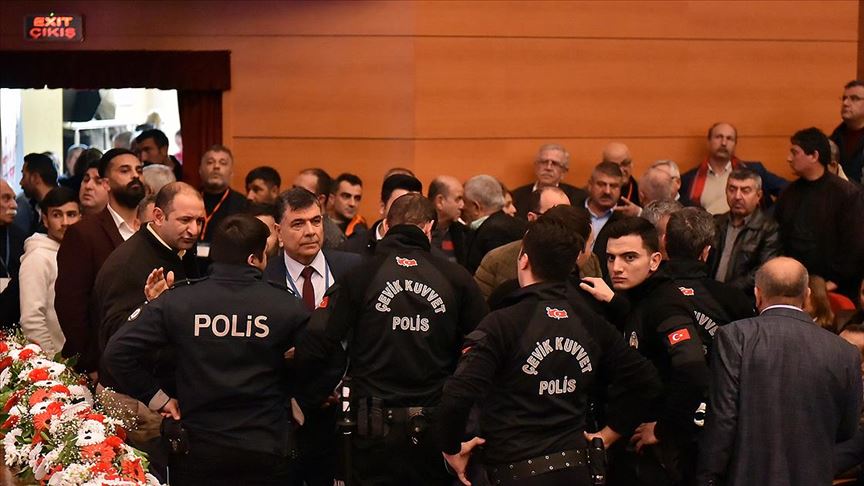 Tartışmanın arbedeye dönüşmesiyle polis ekipleri salona girerek güvenlik önlemi aldı.