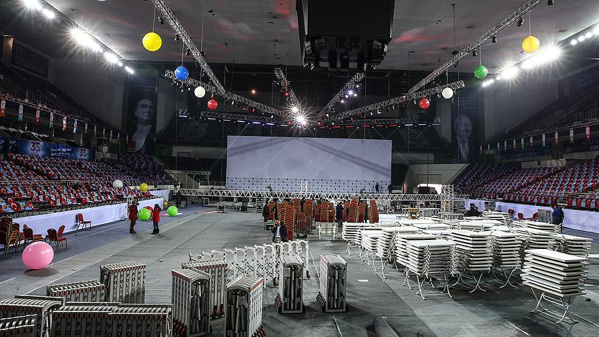 AA muhabirinin aldığı bilgiye göre, kurultayın yapılacağı Ankara Spor Salonu'ndaki çalışmaların gece boyu süreceği ve salonun bugün sabaha hazır hale getirileceği belirtildi.