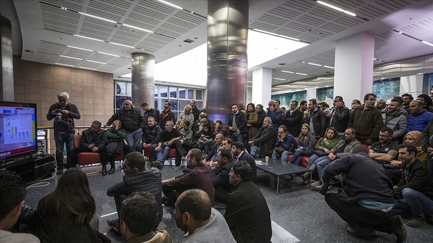 Oy kullanma işleminin sona ermesinin ardından Söğütözü'ndeki CHP Genel Merkezi'ne gelen partililer seçim sonuçlarını bekliyor.