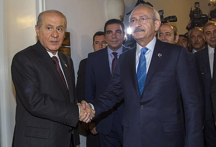 MHP Genel Başkanı Bahçeli de CHP Genel Başkanı Kılıçdaroğlu ve arkadaşları ile ikinci kez görüşme imkanı bulduklarını dile getirerek, bir ayı aşkın süredir yapılan karşılıklı çalışmaları değerlendirdiklerini söyledi.