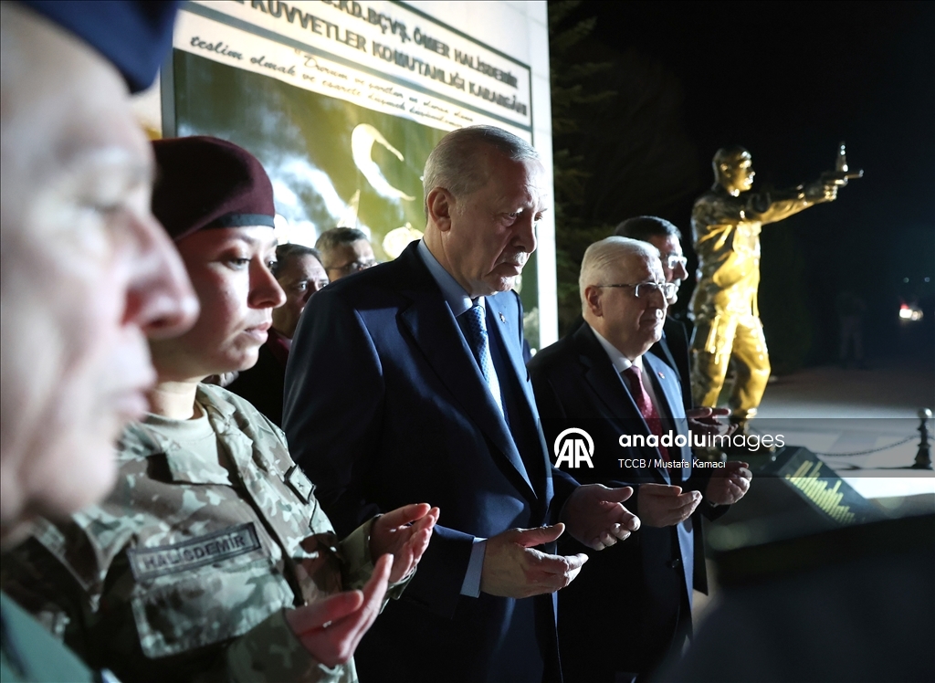 Programın ardından Erdoğan, Fetullahçı Terör Örgütü'nün 15 Temmuz 2016'daki darbe girişimi sırasında Özel Kuvvetler Komutanlığı'nda darbeci generali vurduktan sonra şehit edilen Piyade Astsubay Kıdemli Başçavuş Ömer Halisdemir'in şehit olduğu noktada bulunan anıtın önünde dua etti.