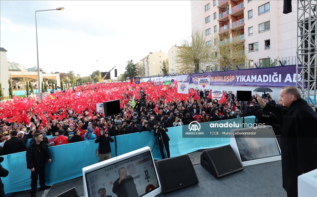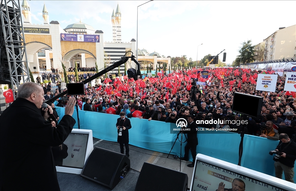 Cumhurbaşkanı Recep Tayyip Erdoğan, Kışla Caddesi'nde düzenlenen deprem konutları temel atma ve 1432 sosyal konut ile 17 dükkanın anahtar teslim törenine katıldı.