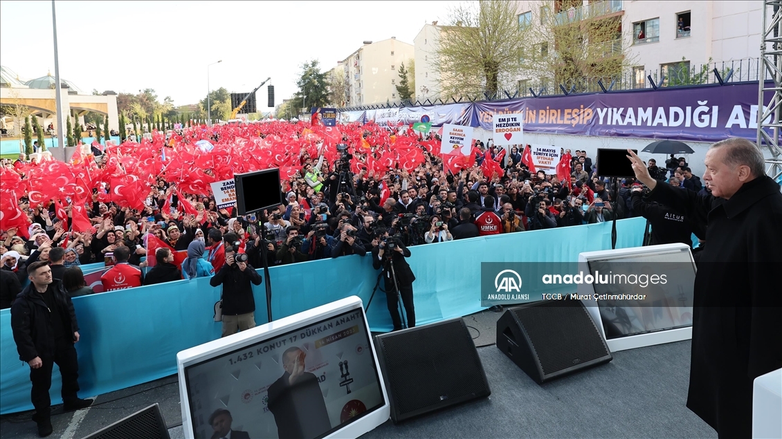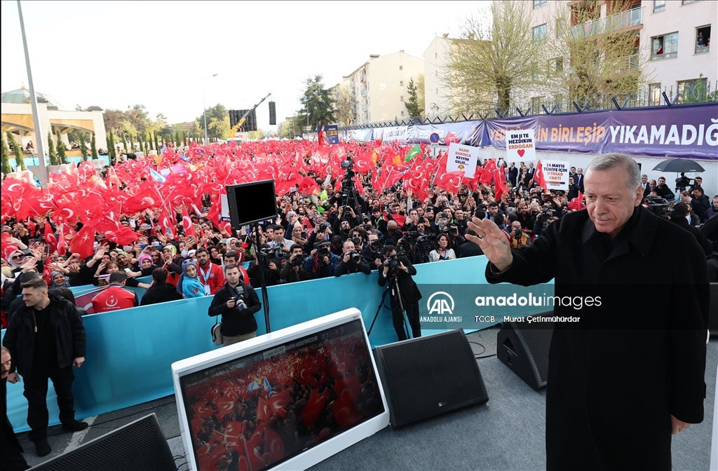 "Şimdi bu meydandan öyle bir ses verin ki Mezopotamya coğrafyasında duymayan kalmasın." ifadesini kullanan Erdoğan, "Diyarbakır, 14 Mayıs'ta ortak geleceğimize sahip çıkıyor muyuz? Diyarbakır, 14 Mayıs'ta 21 yıllık kazanımlarımızı daha da ileri taşıyor muyuz? Diyarbakır, 14 Mayıs'ta Türkiye Yüzyılı'nın inşası için 'Bismillah' diyor muyuz? Diyarbakır, 14 Mayıs'ta 'Türkiye Yüzyılı için doğru adımlarla yola devam' diyor muyuz?" sorularını yönelttiği alandakilerden "Evet" cevabını aldı.