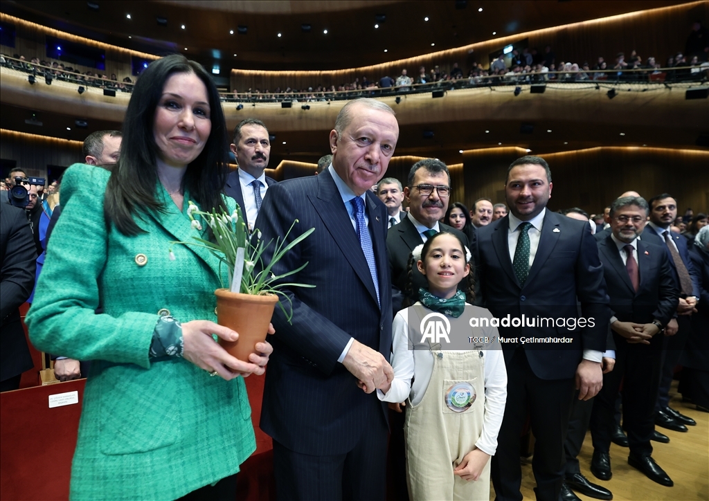 Tabiatı tahrip etmenin kınandığı, israfın şiddetle yasaklandığı, temizliğin övüldüğü bir kültürden geldiklerini aktaran Erdoğan, "Kültürümüzde kurdun, kuşun, dağın, taşın, börtü böceğin, çiçeğin, ağacın, suyun, havanın, toprağın, velhasıl tabiattaki her varlığın hakkı vardır. Bu hakkı gözetmek bize emredilmiştir. Sadece bizde değil dünyanın farklı yerlerinde ilhamını fıtrattan alan tüm kadim kültürlerde tabiat tasavvurunun birbiriyle örtüştüğünü görürsünüz." şeklinde konuştu.