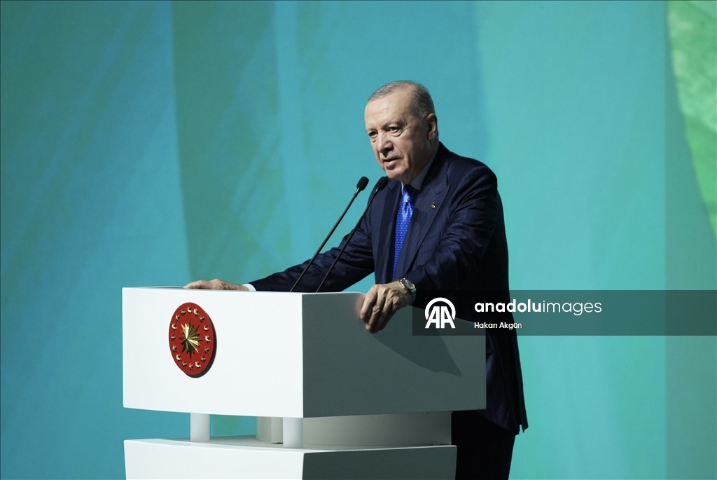 Cumhurbaşkanı Erdoğan, "Bugün tüm dünya, çevre ve iklim meselesinde ciddi sınamaların eşiğinde bulunuyor. Sanayi atıkları, spreyler, dumanlar, petrol ve ilaç atıkları, plastik ürünler, suni gübreler, çöpler, kimyasal atıklar çevremizi çok hızlı biçimde kirletiyor." diye konuştu.