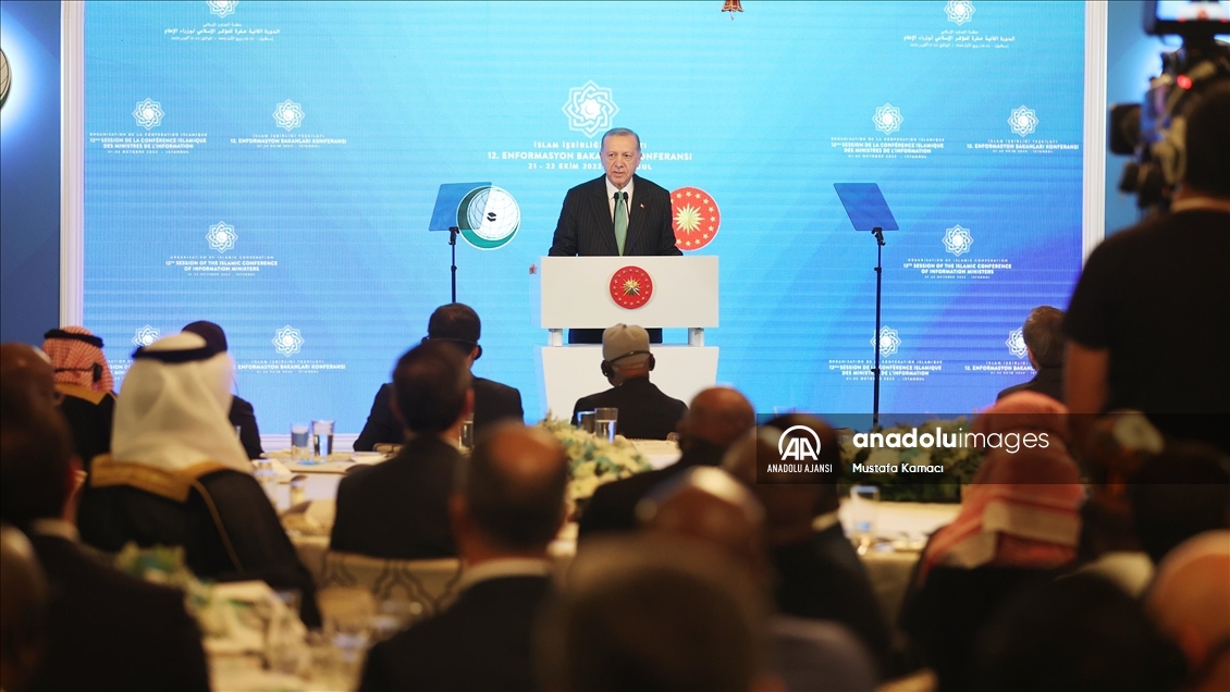 İslam dünyasına da selam gönderen Erdoğan, 12. Enformasyon Bakanları Konferansı'nın katılımcılarını Türkiye'de ağırlamaktan büyük bir memnuniyet duyduğunu söyledi.