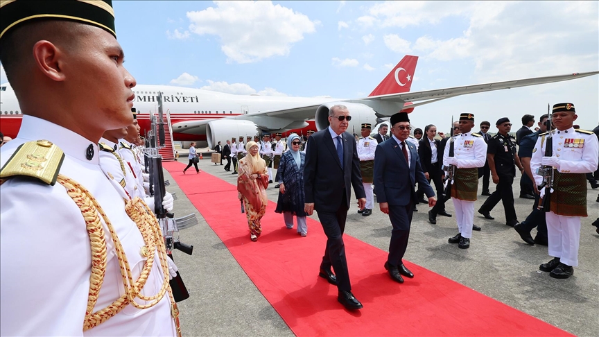 Cumhurbaşkanı Erdoğan ile eşi Emine Erdoğan, Dışişleri Bakanı Hakan Fidan, Enerji ve Tabii Kaynaklar Bakanı Alparslan Bayraktar, Milli Savunma Bakanı Yaşar Güler, Sanayi ve Teknoloji Bakanı Mehmet Fatih Kacır, Tarım ve Orman Bakanı İbrahim Yumaklı, Ticaret Bakanı Ömer Bolat, Cumhurbaşkanlığı Savunma Sanayii (SSB) Başkanı Haluk Görgün, Türk Devletleri Teşkilatı (TDT) Aksakallar Konseyi Başkanı Binali Yıldırım ile Cumhurbaşkanı Dış Politika ve Güvenlik Başdanışmanı Akif Çağatay Kılıç da Malezya'ya geldi.