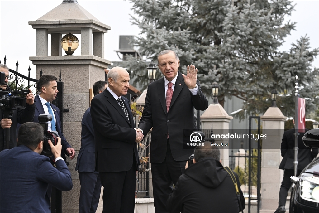 Yaklaşık 1 saat süren görüşmenin ardından Bahçeli, Cumhurbaşkanı Erdoğan'ı, makam otomobiline kadar eşlik ederek uğurladı.