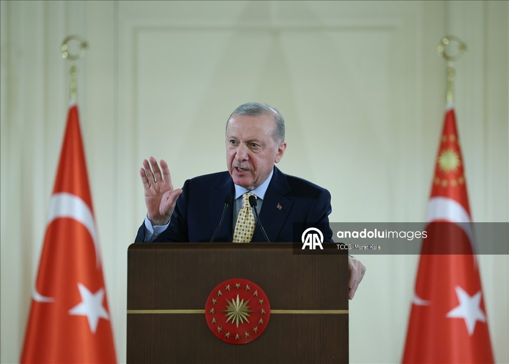 Erdoğan, bugün dünya siyasetinin yeni baştan şekillendiğini, yakın çevrede çok ciddi krizler, çatışmalar ve gerilimler yaşandığını ifade etti.
