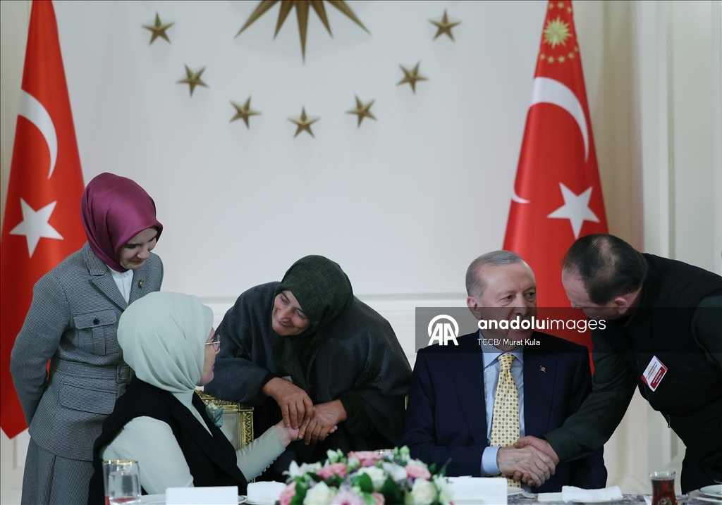 İftarda, Cumhurbaşkanı Erdoğan'ın masasında eşi Emine Erdoğan, TBMM Başkanı Numan Kurtulmuş, Cumhurbaşkanı Yardımcısı Cevdet Yılmaz, Aile ve Sosyal Hizmetler Bakanı Mahinur Özdemir Göktaş, İçişleri Bakanı Mustafa Çiftçi, Milli Savunma Bakanı Yaşar Güler ve şehit aileleri yer aldı.