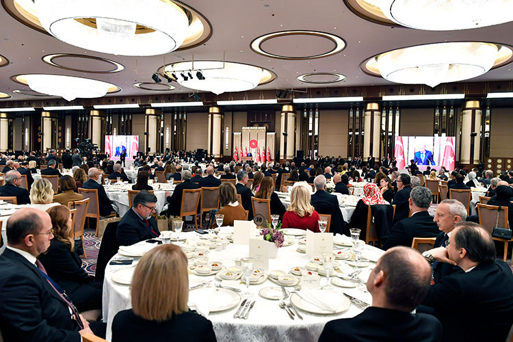 "Nasıl bir tempoyla çalıştığımızın görülmesi açısından burada birkaç rakamı sizinle kısaca paylaşmak arzusundayım. 2025 senesi içinde 24 yurt dışı seyahatimiz oldu. Devlet ve hükümet başkanı düzeyinde 91 lideri ülkemizde ağırladık. Görüşme ve kabul olarak, 270 temas gerçekleştirdik. Yine devlet ve hükümet başkanlarıyla 176 telefon görüşmesi yaptık. Yani 'Aşkla koşan yorulmaz' şiarıyla, milletimize karşı vazifemizi yerine getirmek için çok yoğun bir mesai içinde olduk. Rabb'im ömür ve sağlık verdikçe tempomuzu asla düşürmeyeceğiz."