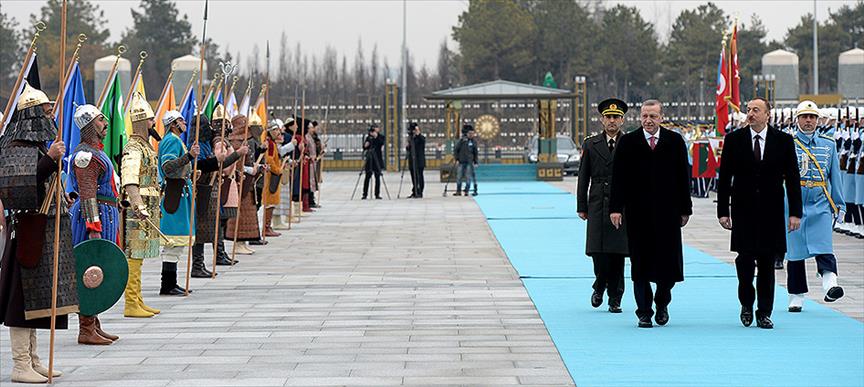 Cumhurbaşkanı Recep Tayyip Erdoğan, resmi ziyaret için Türkiye'de bulunan Azerbaycan Cumhurbaşkanı İlham Aliyev'i törenle karşıladı.