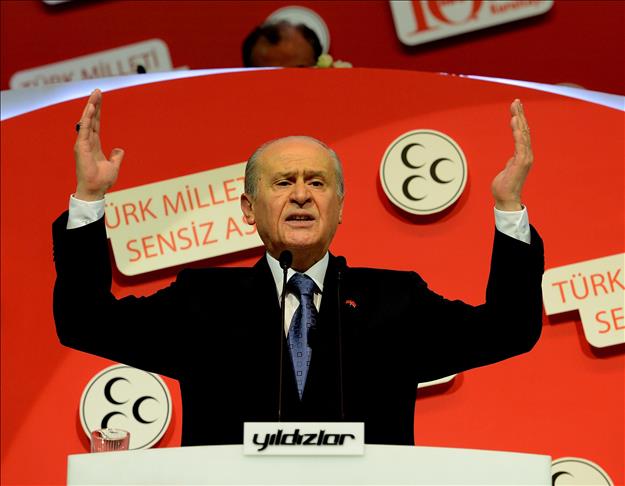 Partinin 43 yıllık birikim ve hatıralarının yeniden zafere ulaştığını dile getiren Bahçeli, ''Milliyetçi ülkücü irade seçimini yapmış ve istikrarda karar kılmıştır. Milliyetçi ülkücü duruş, maceraya prim vermemiş, Türk milletinin yanında durduğunu haykırmıştır'' diye konuştu.