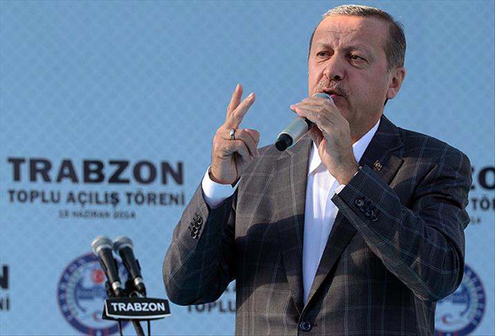 Başbakan Erdoğan, alandakilerin, "Trabzon seninle gurur duyuyor" tezahüratına, "Biz sizlerle gurur duyuyoruz" diyerek karşılık verdi.