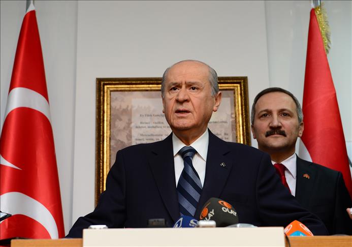 ''Terör lobisi, AKP'yi esir almış, kardeşliğimizi, birlikte yaşama irademizi ve vatanımızı fidye olarak istemiştir'' diyen Bahçeli, şunları kaydetti: ''Bölücü güruh Türk milliyetçiliğini zincirlemek ve Türklüğü silmek için AKP'nin takip edeceği yol haritasını kanlı kalemi ile çizmiştir. Başbakan Erdoğan bu tuzağa düşmüş, bu oyuna gelmiş ve bu sinsiliğin pençesine hapsolmuştur. Başbakan Erdoğan için tek amaç; başkan olabilmek ve saltanatını kurumsallaştırmaktır. Bunun dışındaki her şey ya önemsiz ya anlamsız ya da görmezden gelecek kadar değersizdir"
