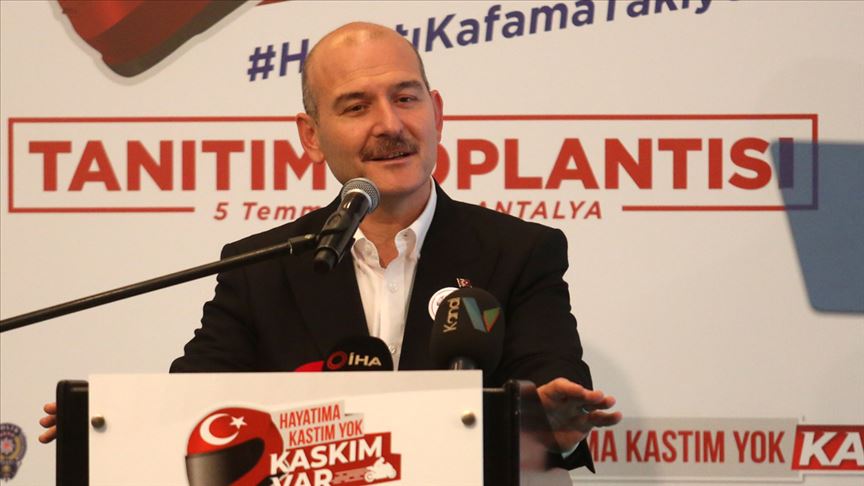 Bakan Soylu, Antalya’da uygulamaya konulan "Hayatıma kastım yok, kaskım var" projesinin bir oteldeki tanıtım toplantısında, kampanyaların toplumsal iletişimde çok etkin ve önemli bir dil olduğuna inandığını söyledi.