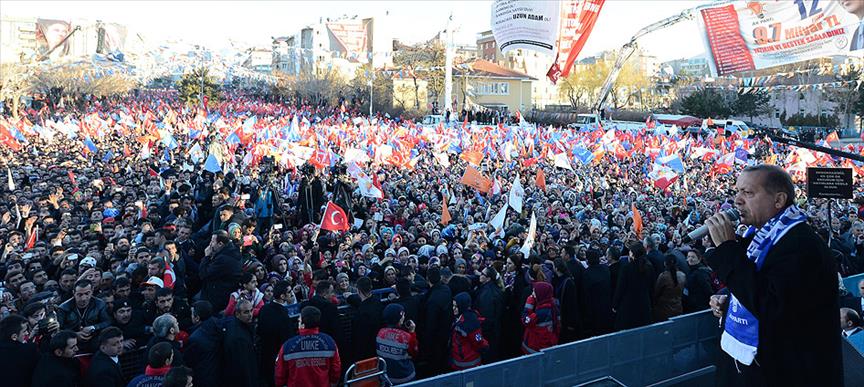 Erdoğan, Erzurum'da bir kez daha kardeşliğin, büyük Türkiye, güçlü Türkiye idealinin kazanacağını ifade etti.