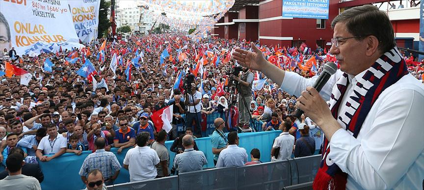 AK Parti Genel Başkanı ve Başbakan Ahmet Davutoğlu, partisinin Mersin mitinginde yaptığı konuşmada, bir taraftan demokrasiyi kökleştirirken diğer taraftan kardeş kardeşe, omuz omuza yaşayacaklarını, yeni Türkiye'yi inşa edeceklerini söyledi.