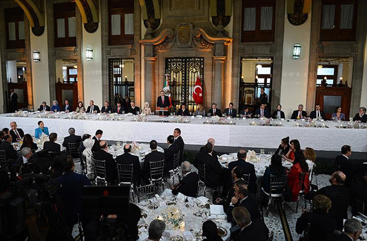 Cumhurbaşkanı Erdoğan, Meksika Cumhurbaşkanı Enrique Pena Nieto ile gerçekleştirdiği baş başa ve heyetler arası görüşmenin ardından, onuruna verilen resmi öğle yemeğine katıldı.
