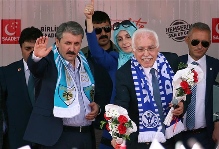Mustafa Kamalak ile eski BBP Genel Başkanı Mustafa Destici, İstasyon Meydanı'nda düzenlenen mitinge katıldı.