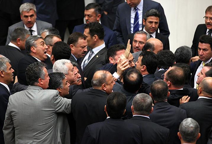 Zenderlioğlu'nun kürsüye gelmemesi üzerine Yakut, AK Parti Antalya Milletvekili Menderes Türel'i davet etti. Türel kürsüye yaklaşırken önce MHP'li Günal kürsüye geldi. Ardından diğer MHP milletvekilleri de kürsüye gelerek, kürsüyü işgal etti. Bunun üzerine AK Parti'li milletvekilleri de kürsü önünde toplandı. Tartışmanın büyümesi üzerine her iki partinin milletvekilleri arasında kavga çıktı. Bunun üzerine Yakut, oturuma ara verdi. Tartışma, verilen arada da bir süre devam etti.