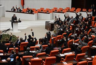 Tezcan, süresi bittikten sonra konuşmaya devam edince, AK Parti'liler kürsüyü işgal etmemesi yönünde tepki gösterdi.