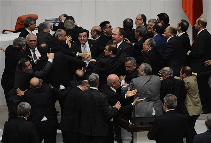 Bunun üzerine Özçelik ile Tezcan yumruklaşmaya başladı. CHP Tokat Milletvekili Orhan Düzgün Özçelik'i boğazına sarılarak, yere yatırdı. Kürsünün etrafında kümeler halinde toplanan çok sayıda AK Parti ve CHP'li milletvekili bir süre tekme tokat, yumruklaşarak kavga etti. Bu sırada AK Parti İstanbul Milletvekili Osman Aşkın Bak ile CHP Manisa Milletvekili Hasan Ören'in de yumruklaştığı görüldü. Arbedede yere düşen milletvekilleri tekmelendi.