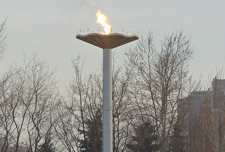 Ateşin yükseldiği çanakta ise bugüne kadar kurulan 16 Türk devletini sembolize eden ay yıldız yer alıyordu.