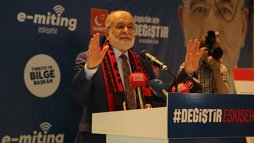 Saadet Partisi Genel Başkanı ve cumhurbaşkanı adayı Temel Karamollaoğlu, partisinin İl Başkanlığınca Eskişehir'de bir otelde düzenlenen e-mitingde, medyada kendilerine ambargo uygulandığını bu yüzden de e-miting düzenlediklerini savunarak, e-miting ile çok sayıda vatandaşa ulaştıklarını belirtti.