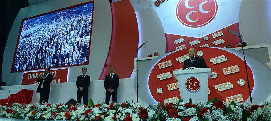 Bahçeli, ''Ülkü ve gayemiz; son yurdumuzda devlet kurmamızın bininci yıl dönümü olan 2077'de,Türkiye'nin dünyaya yön ve nizam veren, siyasi, ekonomik ve kültür alanında rakipsiz bir kutup başı haline gelmesidir'' dedi.