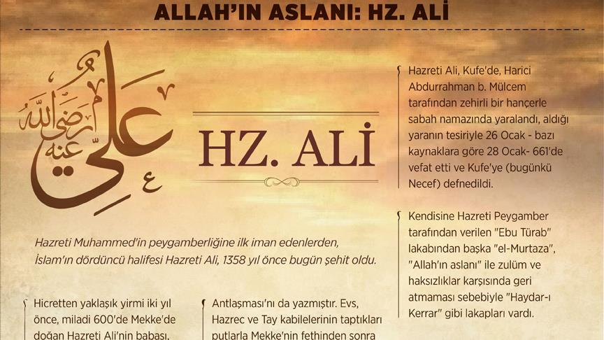 Hazreti Muhammed'in peygamberliğine ilk iman edenlerden, İslam'ın dördüncü halifesi Hazreti Ali, 1358 yıl önce bugün şehit oldu.
